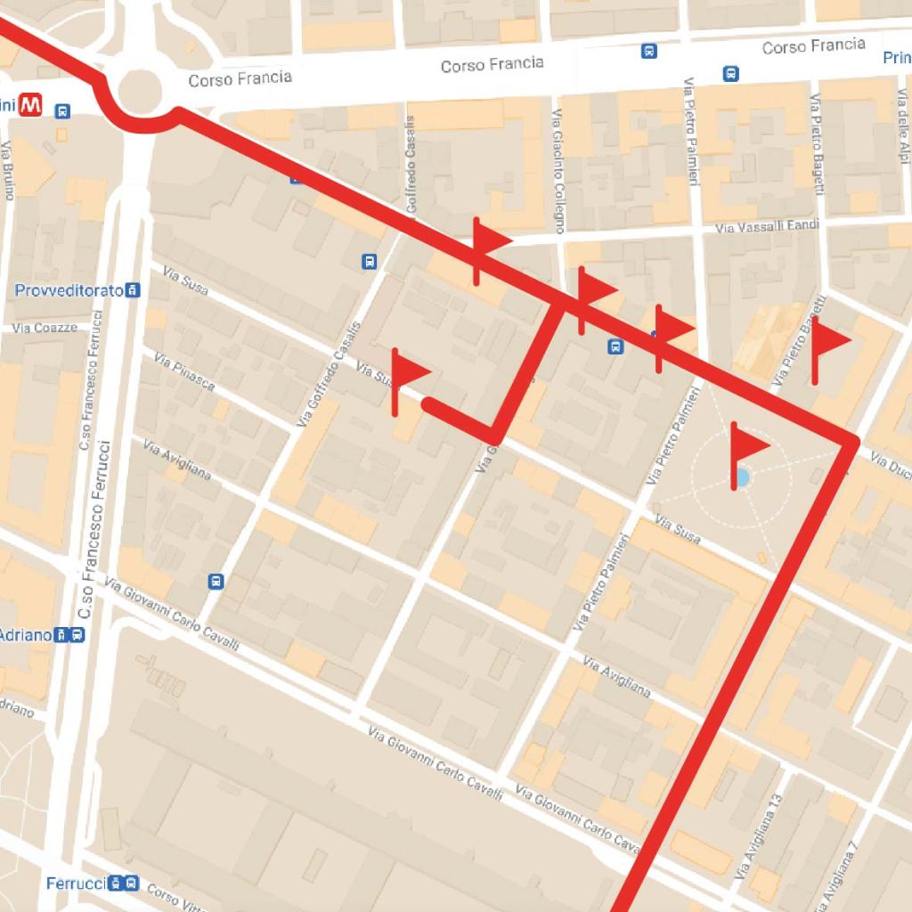 Fermata mezzi alla partenza: Linee 29 e 32 (fermata Martinetto) – Linea 71 (fermata Moncenisio)