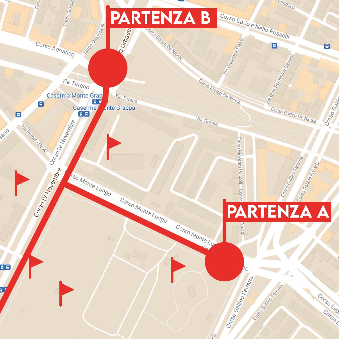 La partenza del percorso (partenza A) è da piazzale Costantino il Grande. Prendete corso Monte Lungo tenendovi sul lato del parco dedicato ai Cavalieri di Vittorio Veneto. Notate le bocciofile adiacenti la passeggiata dove potreste incrociare gruppi di pensionati intenti alla conversazione o al gioco delle carte. All’angolo con corso IV Novembre proseguite a sinistra. In alternativa potete scegliere se partire da largo Orbassano (partenza B), ricollegandovi con il percorso Dal Martinetto alla Crocetta: in questo caso dovete solo imboccare corso IV Novembre tenendovi sul lato sinistro.