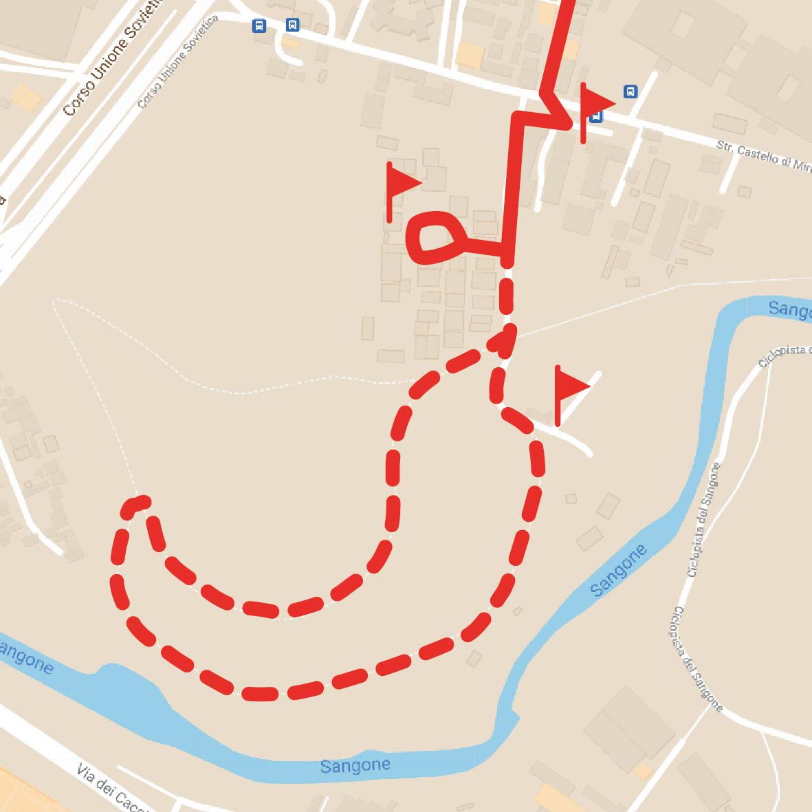 Proposta A: prendete a sinistra, attraversando l’ultimo tratto del passato antico del luogo. Lungo questo tratto si aprono infatti numerosi cortili di cascine ora trasformate a uso residenziale, passaggi rigogliosi di piante e aie riadattate a usi più moderni. La strada devia a destra e si spalanca immettendosi in corso Unione Sovietica. Imboccate il corso sulla destra e percorretelo fino al successivo incrocio con via Farinelli, dove si trovano le fermate dei mezzi pubblici.