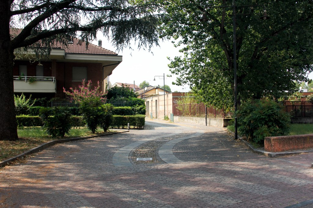 Tornate ora all’ingresso del Mausoleo e proseguite. Attraversate strada Castello di Mirafiori e imboccate a destra strada delle Cacce, che corrisponde all’antico viale che, diramandosi dalla strada per Stupinigi (ora corso Unione Sovietica) arrivava proprio all’ingresso principale del castello. Al primo incrocio svoltate a destra in via Verga: si entra qui in un’area di grandi palazzi popolari dalla trama un po’ disordinata che però è perfetta per girovagare e perdersi in un’atmosfera decisamente peculiare. Da via Verga svoltate in via Capuana e dopo il palazzo guardate a sinistra il ► giardinetto allestito con uno stile “fai da te”, su cui spicca la statua della Madonna al centro. Lasciate la strada e proseguite diritto tra i giardinetti che si infilano tra gli edifici, con le panchine e i tavolini. Svoltate poi a sinistra, prendete via Morandi e seguitela ancora a sinistra. Prima dell’incrocio con via Verga imboccate il vialetto pedonale che appare sulla destra. Percorretelo tutto e notate i cortili condominiali sulla sinistra e la stradina sterrata di villette a destra. Dopo i giardini Wallenberg incrocerete una bocciofila: seguite il sentierino che scivola sulla destra dei campi e vi porta in via Coggiola.