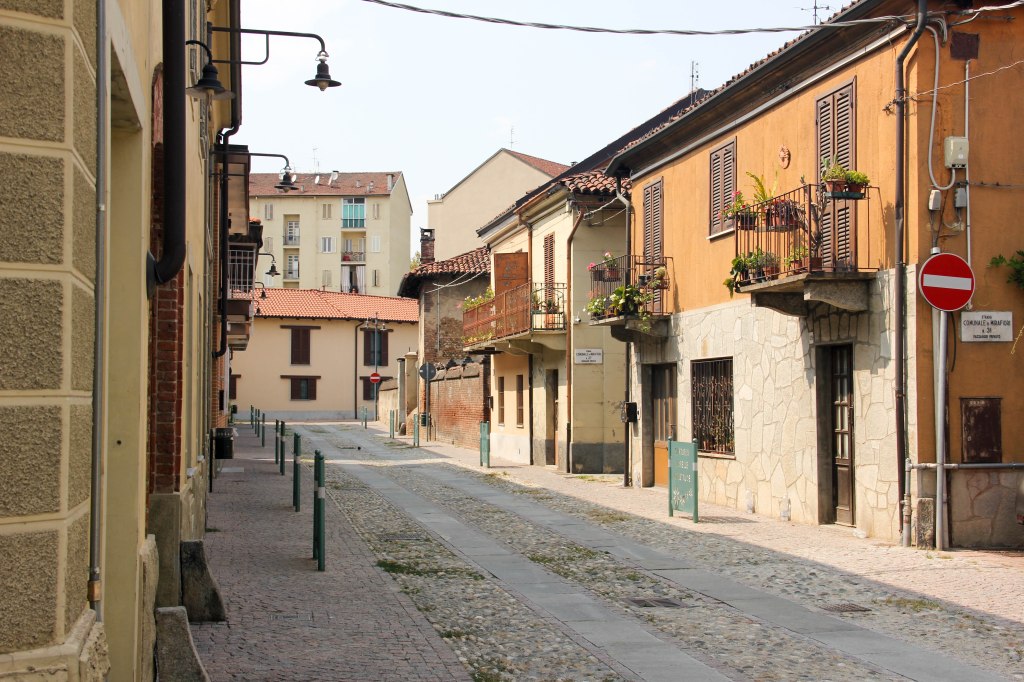 Davanti a voi, sull’altro lato della strada un poco sulla destra, inizia una strada lastricata. Imboccatela. Nello spazio di venti metri salterete dal boom edilizio degli anni Sessanta e Settanta a due-tre secoli prima. Siete entrati nel borgo antico di Mirafiori, nato nel Seicento proprio a servizio del castello e composto in gran parte di cascine, prima dell’esplosione della città tutto intorno che l’ha trasformato in una strana capsula del tempo. Al termine della stradina che avete percorso troverete un incrocio con una piazzetta decorata con sedili di cemento. Prendete a sinistra ma non dimenticate il bivio perché ci tornerete più tardi. Arrivate al semaforo e incontrate ancora una volta la strada del Castello di Mirafiori. Davanti a voi c’è la ► chiesa della Visitazione e di San Barnaba, costruita nel 1617 insieme a un convento cistercense (di cui non restano tracce). Prima i bombardamenti della Seconda guerra mondiale e poi il terremoto del 1980, che fece crollare il campanile, hanno mantenuto intatto solo il corpo della chiesa. Prima della costruzione del Mausoleo, i resti della Bela Rosin furono sepolti qui, in una cappella interna.